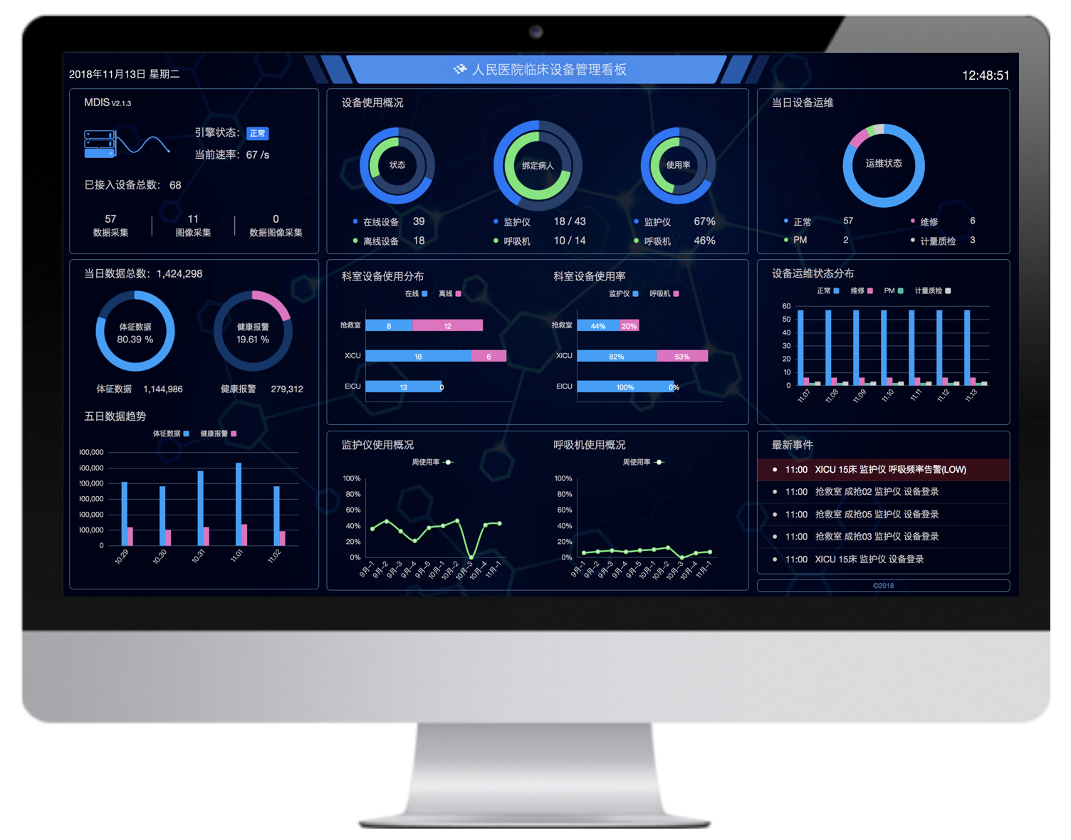病床綁定、患者體征實時監(jiān)護、精確告警、告警響應處置等
