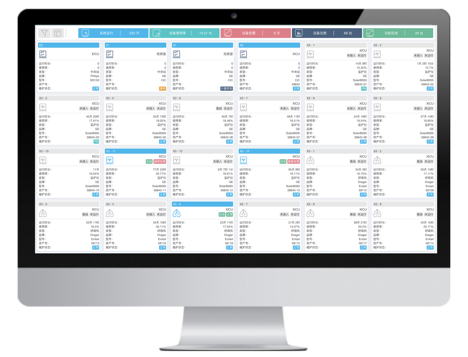 多臺不同品牌的有創(chuàng)呼吸機聯(lián)網,并通過大屏實時集中呈現(xiàn)治療預設參數(shù)和監(jiān)測參數(shù),實現(xiàn)多臺集中監(jiān)測、集中管理和數(shù)據存儲。